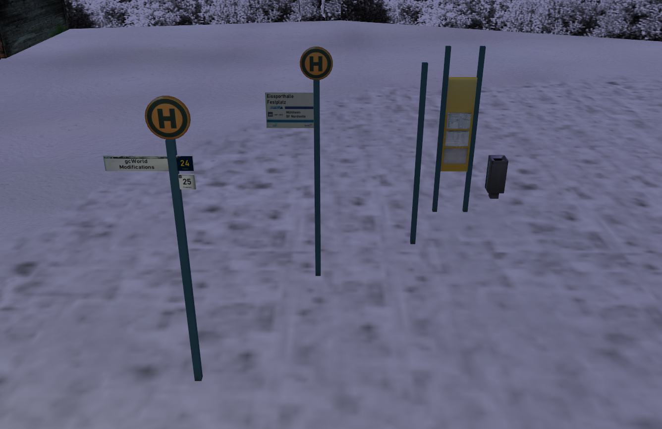Frankfurter Haltestellen Set 1.0 Dieses Set enthält mehrere Frankfurter Haltestellenobjekte. Hierzu zählen ein Wartehaus, zwei verschiedene Haltestellenschilder, Mülleimer, Fahrplanhalter und ein Fahrkartenautomat. Bilder