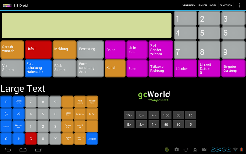 | Funktionen | IBIS, Zahltisch und Ticketdrucker |