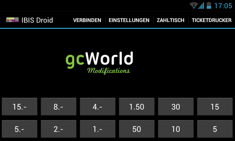 Dazu öffnet man die Einstellungen. Hier wird zunächst die im vorherigen Schritt notierte IP Adresse eingetragen. Anschließend können noch die Karte, Währung und das gewünschte Ticketpack eingestellt werden. Diese Einstellungen können natürlich jederzeit verändert werden. Bei der Auswahl von Default werden die Standardeinstellungen für die jeweilige Karte verwendet.